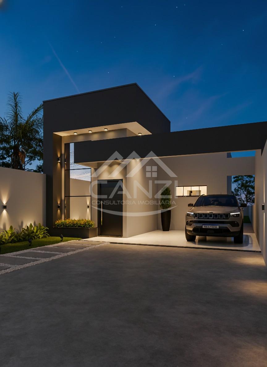 Casa em construção á venda em Realeza, terreno com 320m² e área construída de 99.7m², sendo, cozinha, sala de estar e jantar, 2 quartos e uma suíte, banheiro social e lavanderia, garagem coberta, rua de asfalto, casa toda em laje.